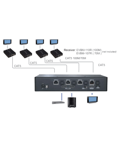 קופסת מיתוג EVBM-M110 REXTRON עד 100 מטר KVM 4K HDMI Extender Over CAT.X, כולל 12 חודשי אחריות.