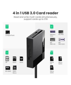 UGREEN 30333 קורא כרטיסים SD,MICRO, CF , MS ארבע באחד, 12 חודשי אחריות ע"י דיירקט גרופ לעסקים