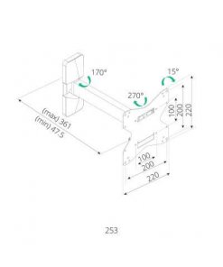 זרוע תלייה 253B SIH קבועה למסכים 3 תנועות עד 56 אינץ', משקל מקסימלי 35 ק"ג, VESA 100, 200X100, 200, 400X200 400, NON VESA, הטייה, סיבוב וצידוד, מרחק מקסימלי מהקיר 36 ס"מ, מרחק מינימלי 4.75 ס"מ, כולל אחריות לכל החיים