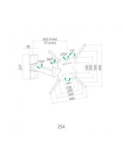 זרוע תלייה 254E SIH קבועה למסכים 4 תנועות עד 56 אינץ', משקל מקסימלי 30 ק"ג, VESA 75,100, 200x100, 200, 400x200, 400, הטייה, סיבוב, צידוד וקיפול, מרחק מקסימלי מהקיר 52 ס"מ, מרחק מינימלי 6.8 ס"מ, כולל אחריות לכל החיים.