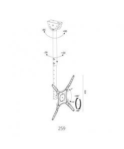 זרוע תקרה 259E SIH קבועה למסכים עד 56 אינץ', משקל מקסימלי 30 ק"ג, VESA 75,100, 200X100, 200, 400X200, 400, NON VESA, הטייה: 15 מעלות, סיבוב: 360 מעלות לכל צד, כולל אחריות לכל החיים.