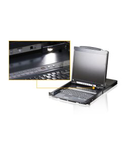 CL3116 ATEN מסך LCD KVM כולל 16 חיבורים יציאות PS/2-USB VGA רחב כולל מנורת תאורה עד 256 מחשבים ועוד, כולל 12 חודשי אחריות.
