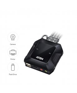 CS22H ATEN מתג KVM כבל HDMI עם 2 יציאות USB ברזולוציה 4K עם בורר יציאות מרחוק ועוד, כולל 12 חודשי אחריות.