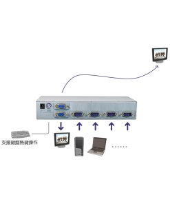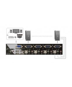 קופסת מיתוג KAAG-114 REXTRON כולל 4 יציאות VGA KVM Switch + USB 2.0 + Audio Hotkey Control, כולל 12 חודשי אחריות.