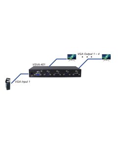 VSVA-104 REXTRON קופסת מיתוג 4 יציאות VGA וידאו עם אודיו, שכפל קלט VGA + אחד למספר יציאות VGA + שמע, תמיכה ברזולוציה של עד 1920X1440 ועוד, כולל 12 חודשי אחריות.