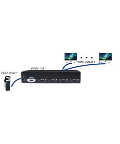 VKSM-104 REXTRON קופסת מיתוג 4 יציאות 4K HDMI ספליטר, פונקציית העתקת EDID מובנית ועוד, כולל 12 חודשי אחריות.