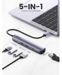 רכזת USB מסוג C-5-in-1 אולטרה דקה עם אתרנט ו- HDMI