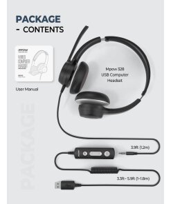 תכונות: אוזניות + מיקרופון כולל אפשרות כיפול האוזניות Mpow | MPBH328AB | HC6 USB Headset | USB