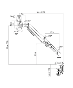 זרוע ארגונומית למסך מחשב עבור מסכים בגודל של עד 36″ ומשקל של 12 ק”ג, המאפשרת צידוד והטיה, לקבלת תנוחת ישיבה נכונה ובריאה תוך הורדת מתח מיותר מהצוואר.