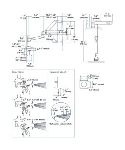 - * קיבולת משקל: 7 עד 25 פאונד (3.2 עד 11.3 ק”ג). עם צגים במשקל של יותר מ-20 פאונד (9.1 ק”ג), טווח התנועה האנכי עשוי להיות מופחת עד 4.5 אינץ’ (11 ס”מ) עבור טווח גובה כולל של 8.5 אינץ’ (22 ס”מ)