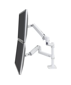 זרוע ארגונומית כפולה Ergotron 45-492-216 יכולה להחזיק בחיבור לשולחן 2 מסכים בגודל של עד 27 אינץ’ (בחיבור אופקי – זה לצד זה) כל מסך ובמשקל מ-7 עד 20 פאונד (3.2-9.1 ק”ג). זרוע ארגונומית זו בעלת גמישות מרבית עם טווח הזזה של 25 אינץ’ (65 ס”מ קדימה אחורה) אופקית, ניתן לכוונן אותה גם ב-13 אינץ’ (33 ס”מ מעלה ומטה) אנכית ולקפל אותה כדי לפנות את שולחן העבודה כאשר המסך אינו בשימוש. זרוע זו מאפשרת התקנת 2 מסכים על שולחן העבודה ולפנותו לעבודה שאינה ממוחשבת. (למרות שהסרטון בתמונות הממוזערות מציג הנחיות להתקנת זרוע הרכבה לשולחן, שימו לב שהפונקציונליות והמפרטים של זרוע ההרכבה לשולחן LX ו זרוע ההרכבה על הקיר של LX זהה, למרות שמיקום ההרכבה שונה.)