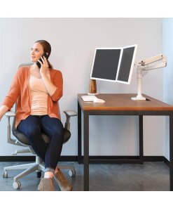 באמצעות זרוע ארגונומית ל 2 מסכים LX Dual Stacking Arm 45-492-216 של יצרנית הארגונומיה הטובה בעולם Ergotron תוכל למצוא את זווית הראייה הטובה ביותר עבורך, לחסוך מקום בשולחן ולגלות את הצד הפרודקטיבי ביותר שלך, הודות לזרוע כפולת צג השולחן LX Dual Stacking Arm. מקם את המסכים שלך במקום שבו אתה צריך אותם עבור כל פרויקט, ולאחר מכן החזר מרחב מלא בהזדמנויות על ידי קיפול הזרוע ודחיפתה הצידה במהלך הפסקת מסך נחוצה.