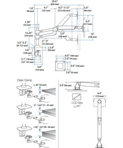 - כולל שתי זרועות LCD, שתי הרחבות, מוט 13 אינץ’, שני צווארוני מוט, בסיס, מהדק שולחן