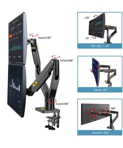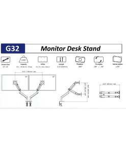 תכונות: זרוע צג ל 2 מסכים ארגונומית דו-מפרקית גודל מסך עד 32″ אינץ’ NORTH BAYOU | G32-B