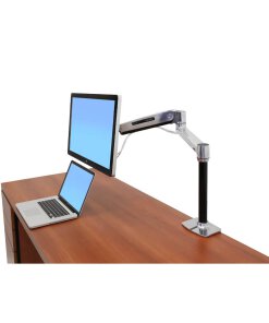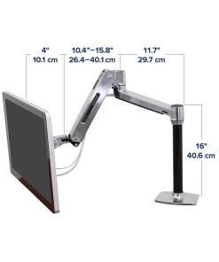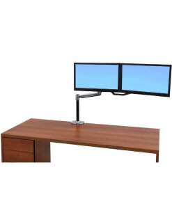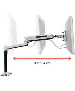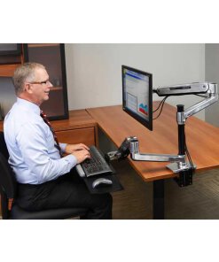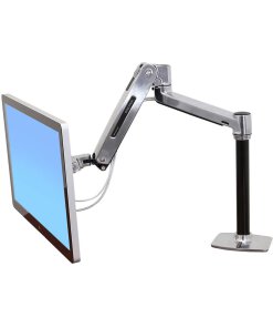 זרוע ארגונומית Ergotron 45-384-026 יכולה להחזיק מסך על שולחן בגודל של עד 49 אינץ’ ומשקלו מ-14 עד 30 פאונד (6.3 עד 13.6 ק”ג). זרוע ארגונומית זו בעלת גמישות מרבית אשר עם טווח הזזה של 33 אינץ’ (84 ס”מ מהבסיס לנקודה הרחוקה ביותר) אופקית ולקפל אותה כדי לפנות את שולחן העבודה כאשר המסך אינו בשימוש. ניתן לכוונן אותו גם ב-62 אינץ’ (157 ס”מ) מצד לצד וכוונון גובה של 20 אינץ’ (51 ס”מ) מאפשר לך לעבוד בישיבה או בעמידה.