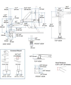 - מהדק שולחן מתחבר לקצה של עד 2.5 אינץ’ (65 מ”מ) עובי; תושבת לולאה מתחברת דרך חור ברוחב 0.5 אינץ’ עד 2.5 אינץ’ (13–65 מ”מ) ועד 2.5 אינץ’ (65 מ”מ) עובי
