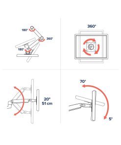 - כולל זרוע עמידה לשבת LX, הארכה, בסיס מהדק שולחן, בסיס תושבת לולאה, מוט באורך 48 ס”מ, תושבות VESA, חומרת חיבור