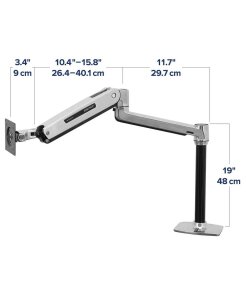 - תיאור: זרוע LX לשבת בעמידה לשולחן עבודה (אלומיניום מלוטש)
