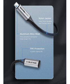 תכונות: כבל מאריך CableTime | CU21H | 10Gbps | PD 100W | USB3.1 Gen 2 USB-C Male To USB-C Female Extension