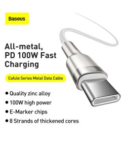 כבל נתונים ממתכת מתאם Type-C ל Type-C הספק 100W אורך הכבל 2 מטר בצבע לבן Baseus | CATJK-D02