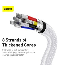 תכונות: כבל נתונים ממתכת מתאם Type-C ל Type-C הספק 100W אורך הכבל 2 מטר בצבע לבן Baseus | CATJK-D02