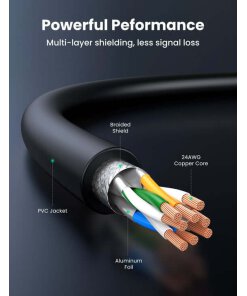 בהשוואה למעטה הפלסטיק הרגיל של כבל UTP, כבלי ה- Ethernet המהירים עם מעטפת PVC 0.8 מ”מ ורדיד אלומיניום מרובים מספקים מיגון חזק.