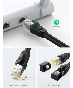 מחברי RJ45 מצופים בזהב מגנים על הכבל מפני הפרעות אלקטרומגנטיות חיצוניות.