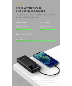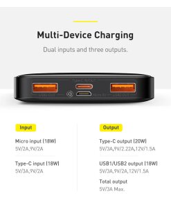 תכונות: מטען נייד מהיר לסמארטפון בצבע שחור Baseus | PPDML-N01 | 30000mAh | PD+QC | USB | Type-C | 20W