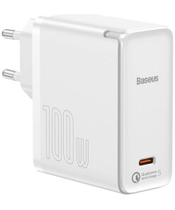 תכונות: מטען קיר מהיר בהספק 100W עם כבל Type-C עבור 5A 1,5 מטר בצבע לבן Baseus | TZCCGAN-L02 | GaN2 1C