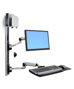 באמצעות מערכת תלייה ארגונומית לזרועות 45-247-026 של יצרנית הארגונומיה הטובה בעולם Ergotron ניתן לתכנן תחנת עבודה ארגונומית עם שילוב של מקלדת ועכבר. צור עמדת עבודה ארגונומית מושלמת עם אפשרויות כיוון מרובות לנוחות עבודה ופרודוקטיביות מרבית עם תחנת עבודה מלאה זו. מקם מחדש את המסך או המקלדת שלך למעלה ולמטה או מצד לצד כדי לפנות מקום בזמן של חוסר שימוש. מערכת התלייה על הקיר תומכת ב-LCD, מקלדת ומחשב עם טביעת רגל קומפקטית המשתלבת במקומות צרים.
