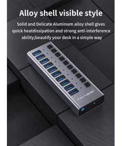 מפצל USB 10-Port חיבור USB3.0 מהירות 5Gbps עם ספק כח ACASIS | HS-710MG | Hub Splitter