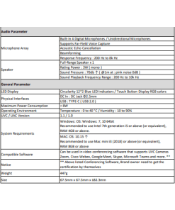תכונות: מצלמת רשת לחדרי ישיבות TENVEO | Tevo-CC600 | 4K Conference Camera With Microphone 360° View