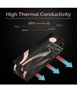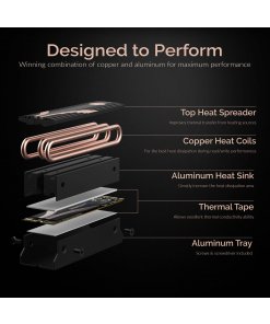 הנחושת משמשת לספיגת החום מהכונן המפיץ אותו אל משטח האלומיניום המחורץ של גוף הקירור. זה נותן לחום משטח רב יותר לקירור יעיל, אשר בתורו נמנע מצערת תרמית וממקסם את ביצועי הכונן שלך.