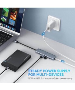 רכזת נתונים USB C 4 יציאות תומכת בהעברת נתונים מהירה במיוחד עד 5Gbps – פי 10 מהר יותר מ- USB 2.0 (480 Mbps),