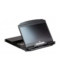 - קונסולת KVM משולבת עם צג LCD בעל מסך רחב 18.5 אינץ’ עם תאורה אחורית במארז מסילה כפולה עם מרווח עליון ותחתון להפעלה חלקה במדף מערכת גבוה 1U