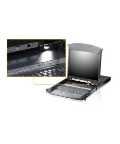 - מנורת תאורת LED בלעדית – תוכננה על ידי ATEN להאיר את המקלדת ומשטח המגע כדי לאפשר נראות בתנאי תאורה נמוכה.