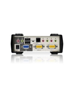 מתג KVM CS1732A בעל 2 יציאות כולל USB מובנה בכל אחד מהפנלים הקדמיים והאחוריים ומחברי אות השמע. הוא מאפשר למשתמשים לשלוט במחשב ובהתקנים היקפיים באמצעות מסוף אותות בנוחות.