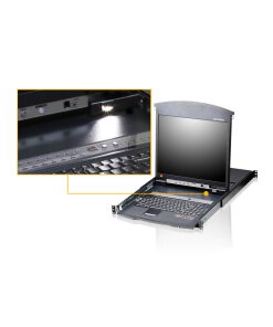 - קונסולת KVM משולבת עם צג LCD בגודל 19 אינץ ‘עם תאורה אחורית במארז Slideaway ™