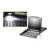 - קונסולת KVM משולבת עם צג LCD עם תאורה אחורית בגודל 17 אינץ ‘או 19 אינץ’ במארז Slideaway ™
