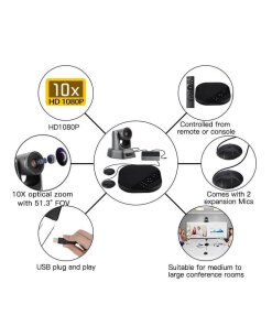 תכונות: ערכת שיחות וועידה – מצלמת רשת דיבורית ושני מיקרופונים שולחנים TENVEO | TEVO-VA3000ProE | USB Webcam 1080P PTZ