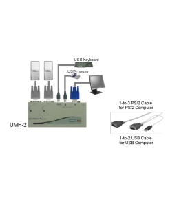 תכונות: קופסת מיתוג 2 יציאות מתג VGA KVM עם USB, בקרת מקש חם REXTRON | UMH-2