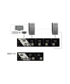 MAG-112 הוא מתג KVM HDMI בעל 2 יציאות עם פונקציות מקשים חמים, תומך ברזולוציות של עד 1920 x 1200, מאפשר לשני מחשבים לשתף קונסולת USB ו -4 ציוד היקפי USB שונה.