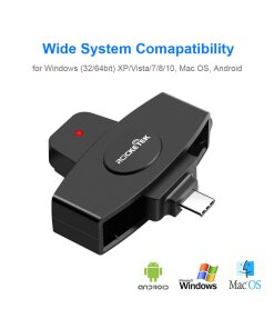 קורא כרטיסים חכמים לכרטיסי זיהוי ושבבים חיבור Type-C במהירות גבוהה ROCKETEK | CSCR3
