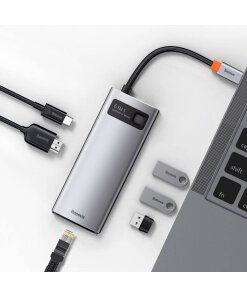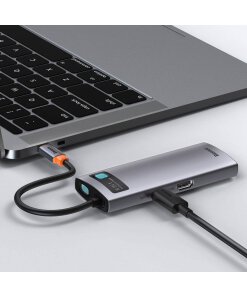 Baseus Metal Gleam 6in1 multifunctional HUB USB Typ C – USB Typ C Power Delivery 100 W / HDMI 4K 30 Hz / 3x USB 3.2 Gen 1 / RJ45 1 Gbps