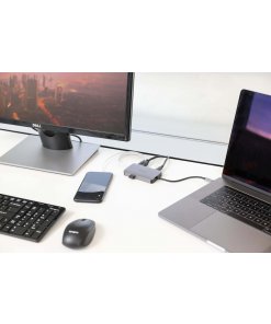 חבר את המכשירים התומכים ב-USB-C לצג HDMI או VGA יחיד, תוך חיבור לרשת Gigabit Ethernet, וחיבור ציוד היקפי המפתח שלך – כמו עכברים, מקלדות, כונני הבזק או כוננים קשיחים – ל-USB-A ו-USB -יציאות C.