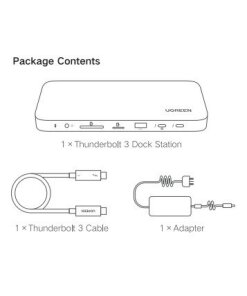 תחנת עגינה מחברת UGREEN מדגם: 80547 עם חיבור Thunderbolt 3 אפשרות חיבור עד 3 מסכים תומכת ברזולוציה 8K , כוללת שנאי חיצוני 24V , למוצר 12 חודשי אחריות ע”י דיירקט גרופ לעסקים