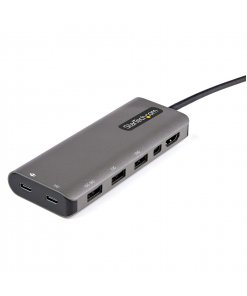 מתאם USB-C מרובה יציאות זה עם DP 1.4 Alt-Mode התומך ב-4K 60Hz HDMI® ו-mini DisplayPort הופך את ה-MacBook Pro, Dell XPS, או מחשבים ניידים או טאבלטים מסוג USB-C™ אחרים שלך לתחנת עבודה, בכל מקום שאתה הולך. מתאם USB Type-C מרובה יציאות מספק פלט וידאו 4K HDMI או mDP, שלוש יציאות USB 3.2 Gen 2 Type-A (10Gbps) כולל יציאת טעינה אחת של BC 1.2; ויציאת USB-C אחת (10Gbps), הכל דרך חיבור אחד ליציאת USB-C או Thunderbolt 3™ של המחשב הנייד שלך. בנוסף, הוא מציע טעינה מתקדמת באמצעות USB Power Delivery 3.0 וכבל מארח מצורף 12 אינץ’ (30 ס”מ) ארוך במיוחד לטווח הגעה מורחב כדי להציע יותר גמישות בהגדרה.