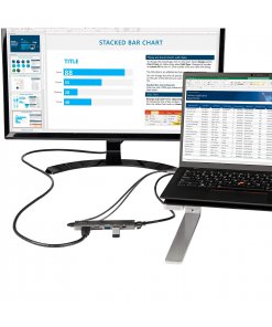 תחנת העגינה הניידת מחברת את המחשב הנייד שלך לצג 4K 60Hz HDMI (4096 x 2160p) כדי ליצור תחנת עבודה עוצמתית. זה יכול גם להתחבר למוניטור רחב במיוחד.