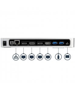 משכפל יציאות כולל רכזת USB Type-A עם 6 יציאות, Gigabit Ethernet ושקעי שמע בגודל 3.5 מ”מ (אוזניות ומיקרופון) - סרטון מרובה מוניטור גמיש: תחנת עגינה אוניברסלית 4K 60Hz אוניברסלי זו יכולה לחבר עד 2 צגים: Dual DisplayPort או Dual HDMI או צגי DP + HDMI;