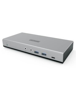 תחנת עגינה זו מציגה כפול USB המחברת את המחשב/המחשב הנייד שלכם לעד שני צגים נוספים, חיבור Ethernet של Gigabit,